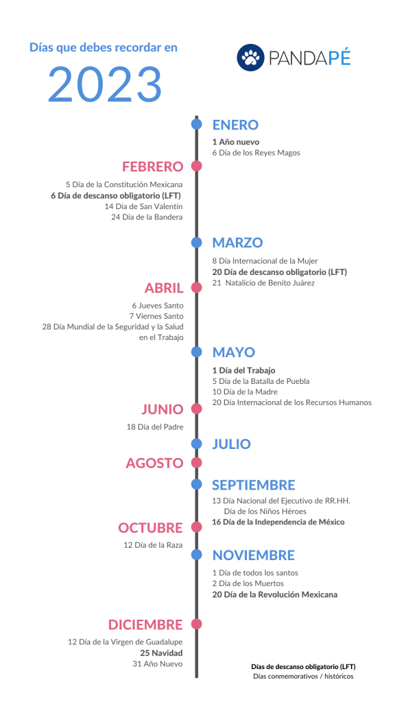 A continuación te compartimos una imagen con los días festivos y conmemorativos en México para el año 2023: