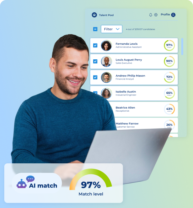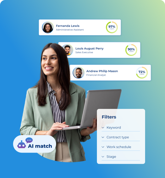 Forget about manual tasks: post, manage, and filter candidates in seconds.